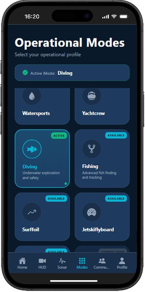 Low-visibility navigation: Night, Thermal, Sonar, and Underwater modes designed for fog, darkness, and turbid waters.